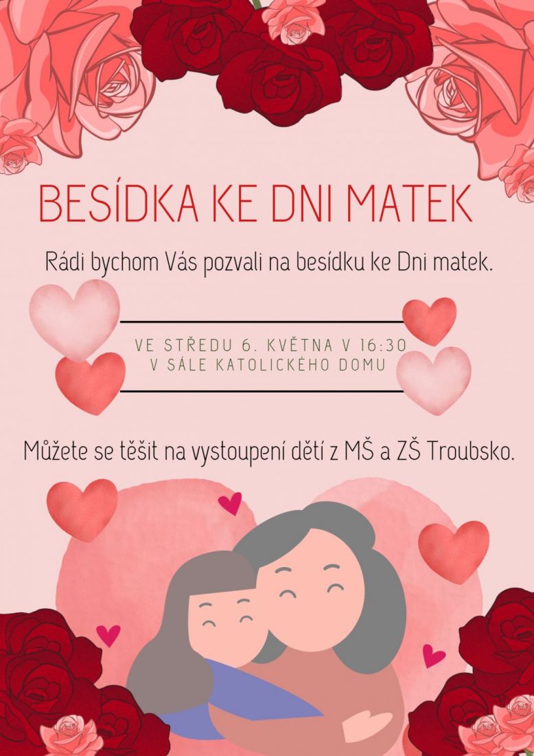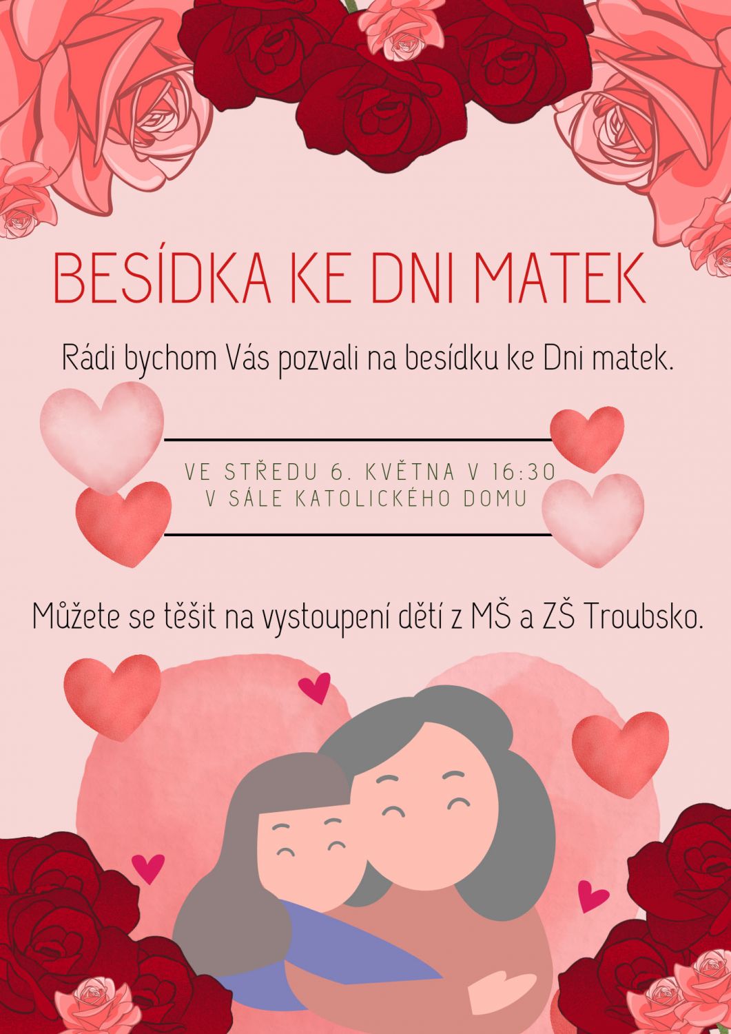 Milé mamiínky, babičky a naši mílí rodiče, srdečně vás zveme na besídku ke dni mamninek ve středu 6.5.2026.